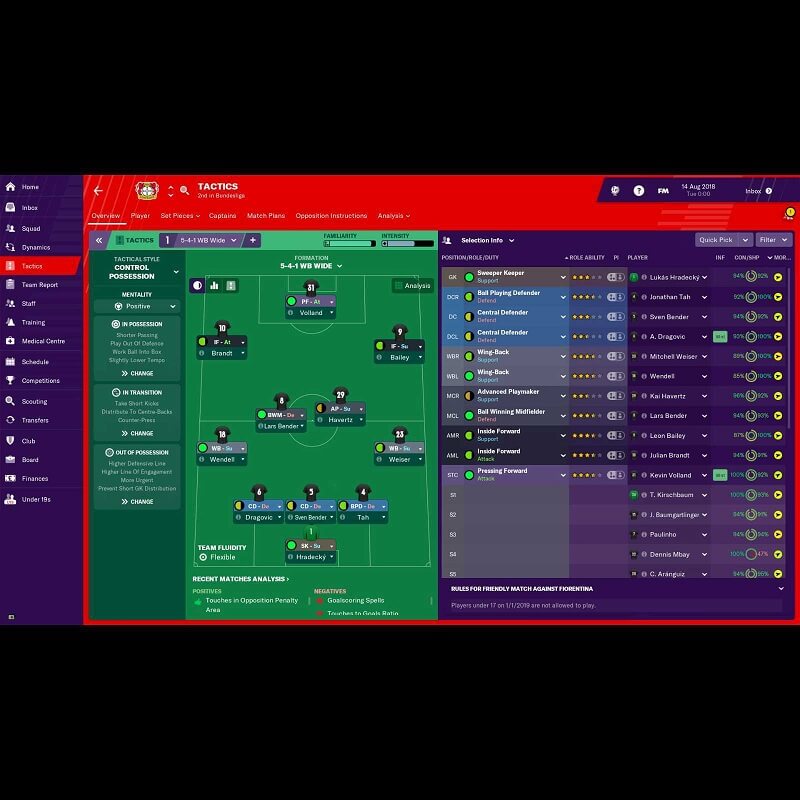 Визуальное оформление получило свежее дыхание: обновлены эмблемы клубов, переработаны графические элементы, усовершенствованы анимационные последовательности. Немецкие лиги — Бундеслига и её второй уровень — теперь полностью лицензированы и готовы к сезону 2018/2019. Двадцать шесть чемпионатов из одиннадцати государств предоставляют полный спектр возможностей для экспериментов.